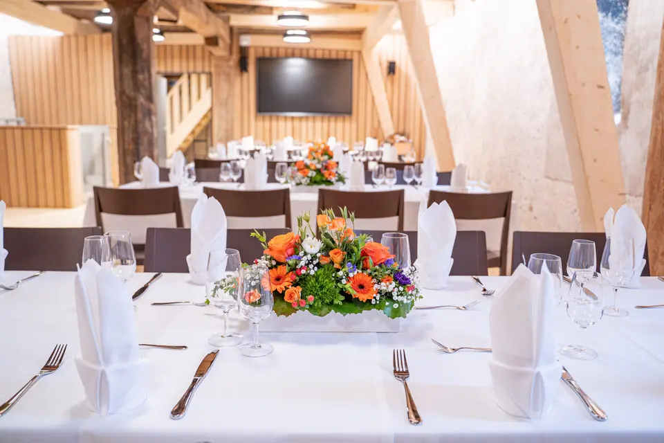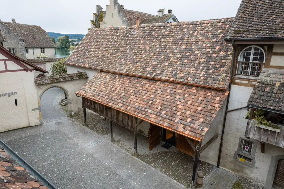 Die Chlosterschüür aus dem Jahr 1432, Teil des historischen Klosters St. Georgen, wurde mit grosser Sorgfalt und Respekt vor der denkmalgeschützten Bausubstanz umgebaut. In enger Zusammenarbeit mit der Bauherrschaft, der Familie Villiger, entstand aus der ehemaligen Klosterscheune ein einzigartiges Eventlokal, das Geschichte und zeitgemässe Nutzung harmonisch verbindet. Der behutsame Umbau bewahrt den charaktervollen Bestand und verleiht dem Gebäude eine neue, lebendige Zukunft im Herzen von Stein am Rhein.